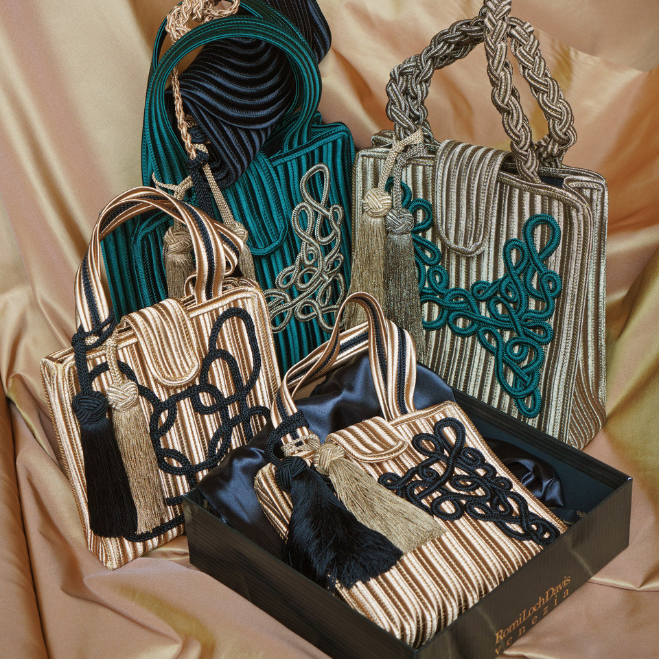 La collection s’enrichit de matériaux inspirés de Venise — fibres, nuances et détails hérités de cette cité magique où l’artisanat et la beauté se rencontrent depuis des siècles.